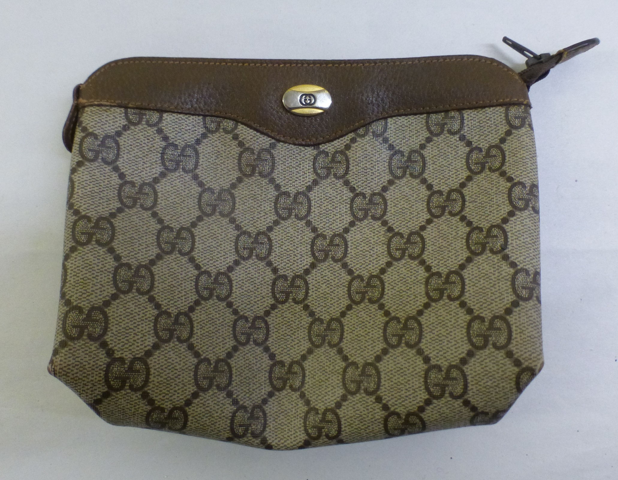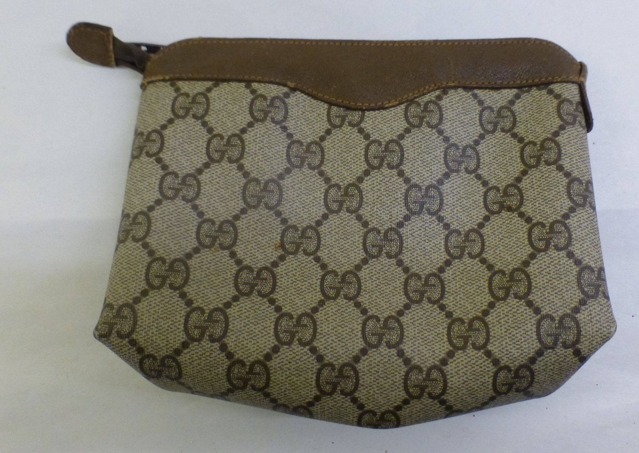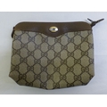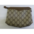 A Gucci brown leather and fabric makeup bag no.62402 6" x 7"