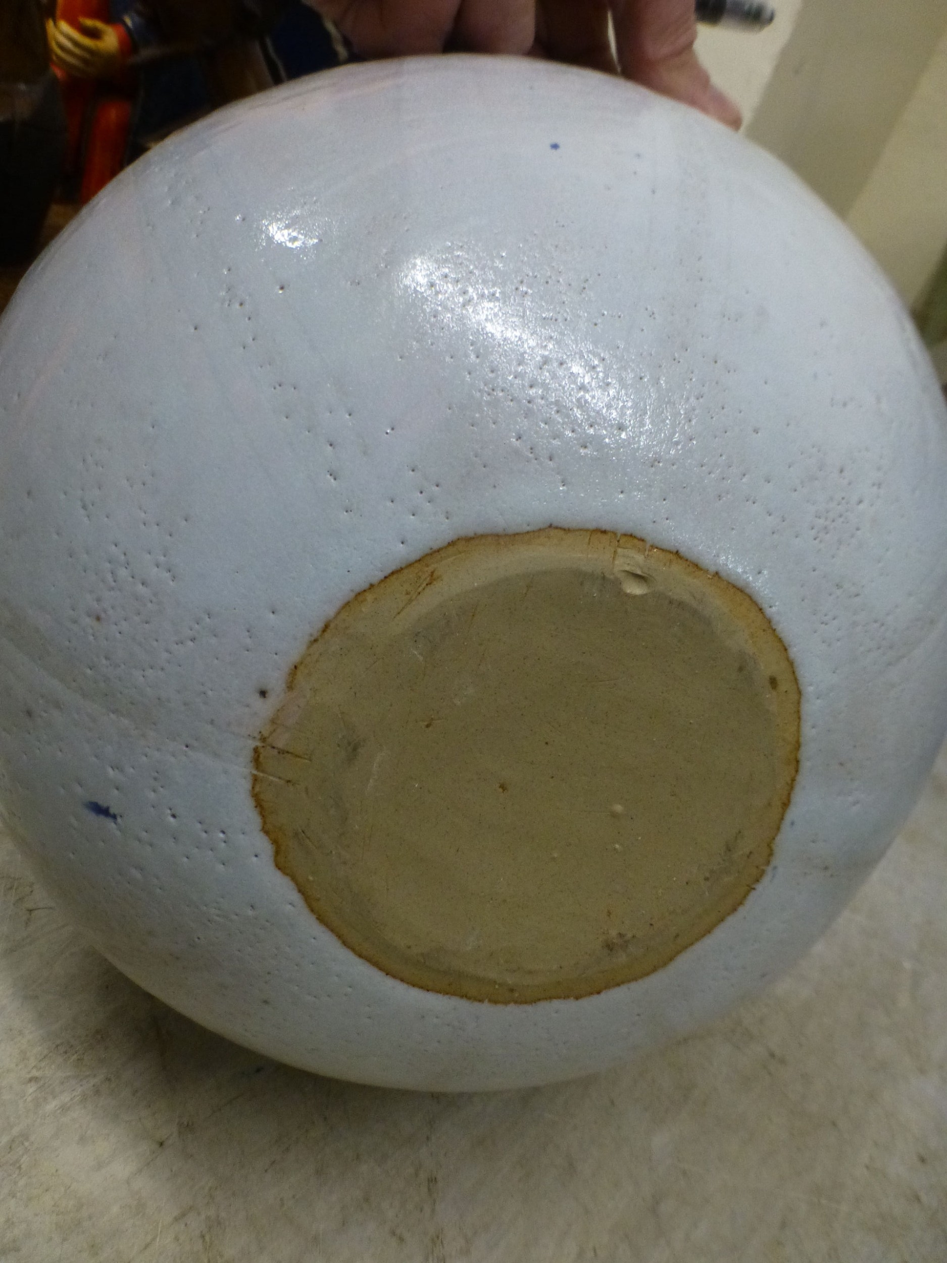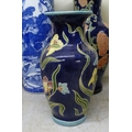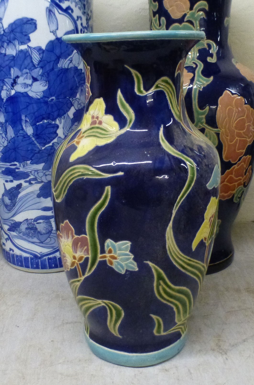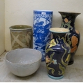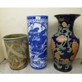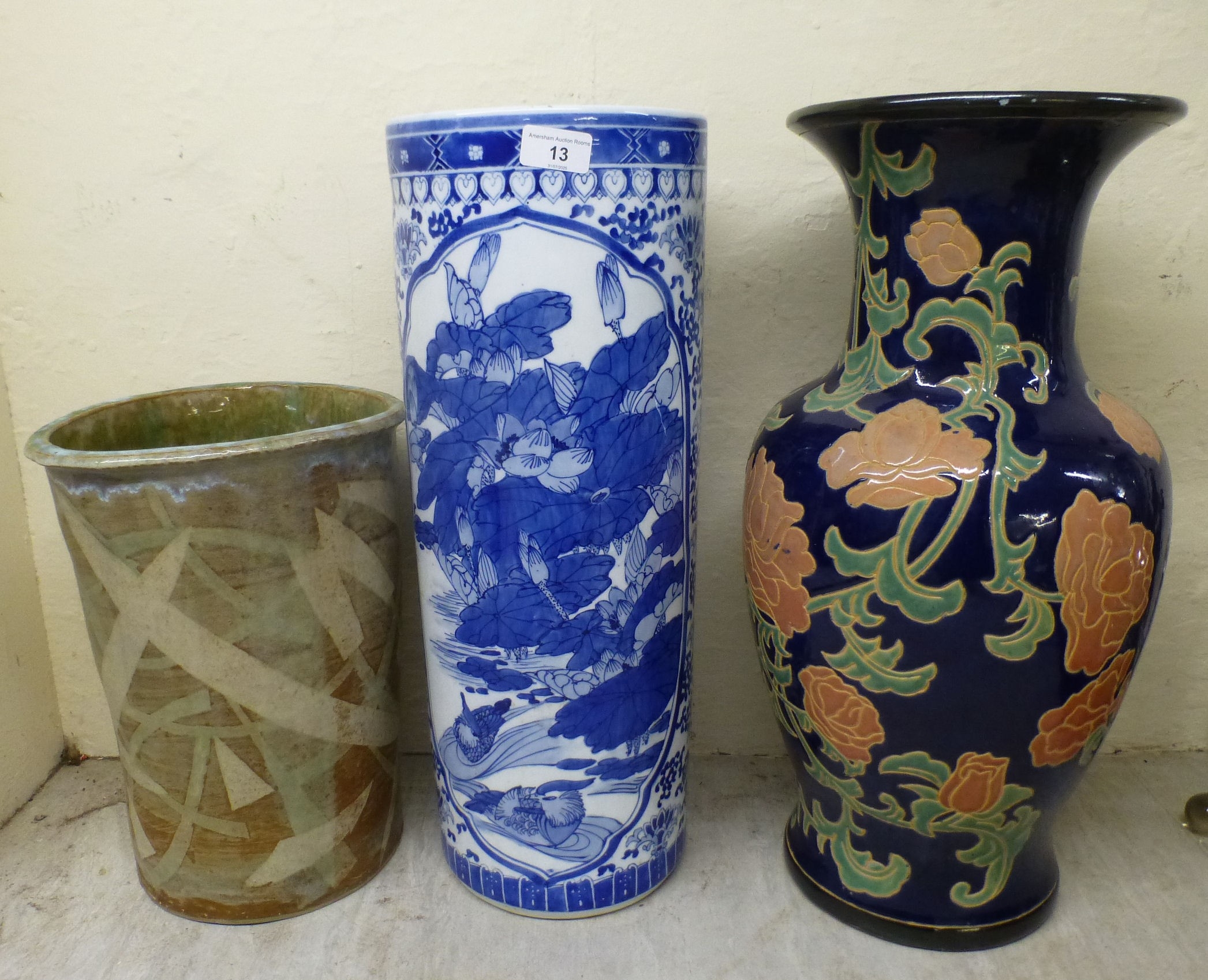 Interior designer accessories: to include a modern china, cylindrical stickstand, decorated in blue and white 21"h