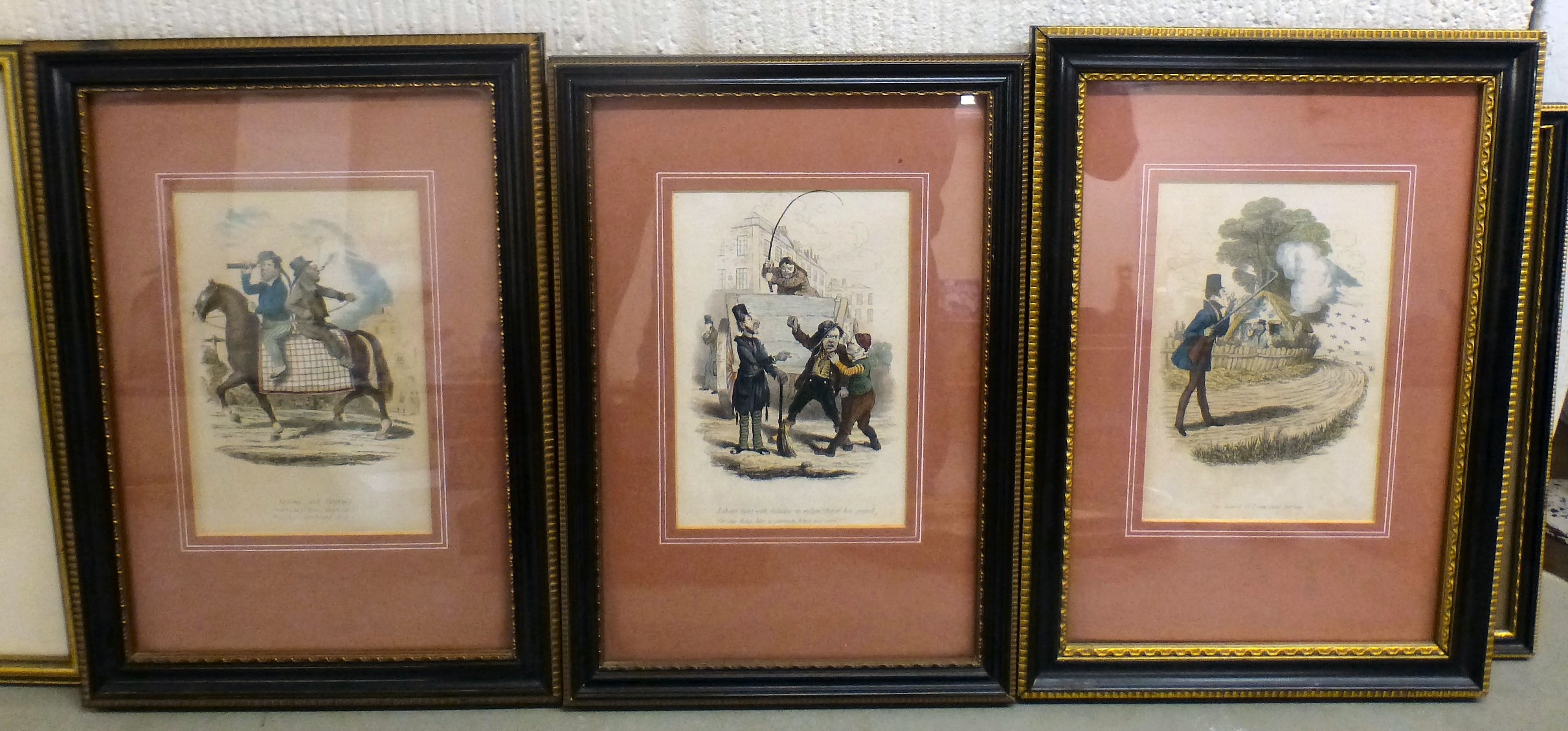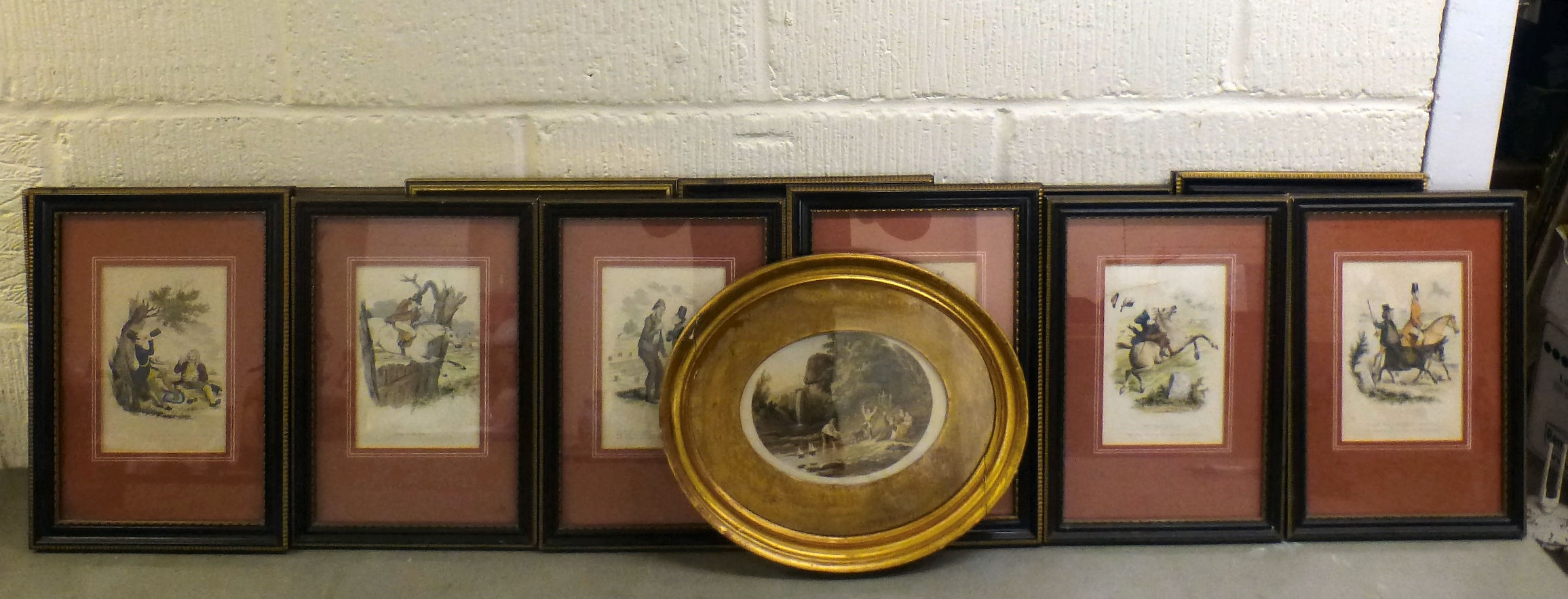 Framed prints, mainly Victorian influence, figures, landscapes, equestrian and other all approx. 4" x 6"