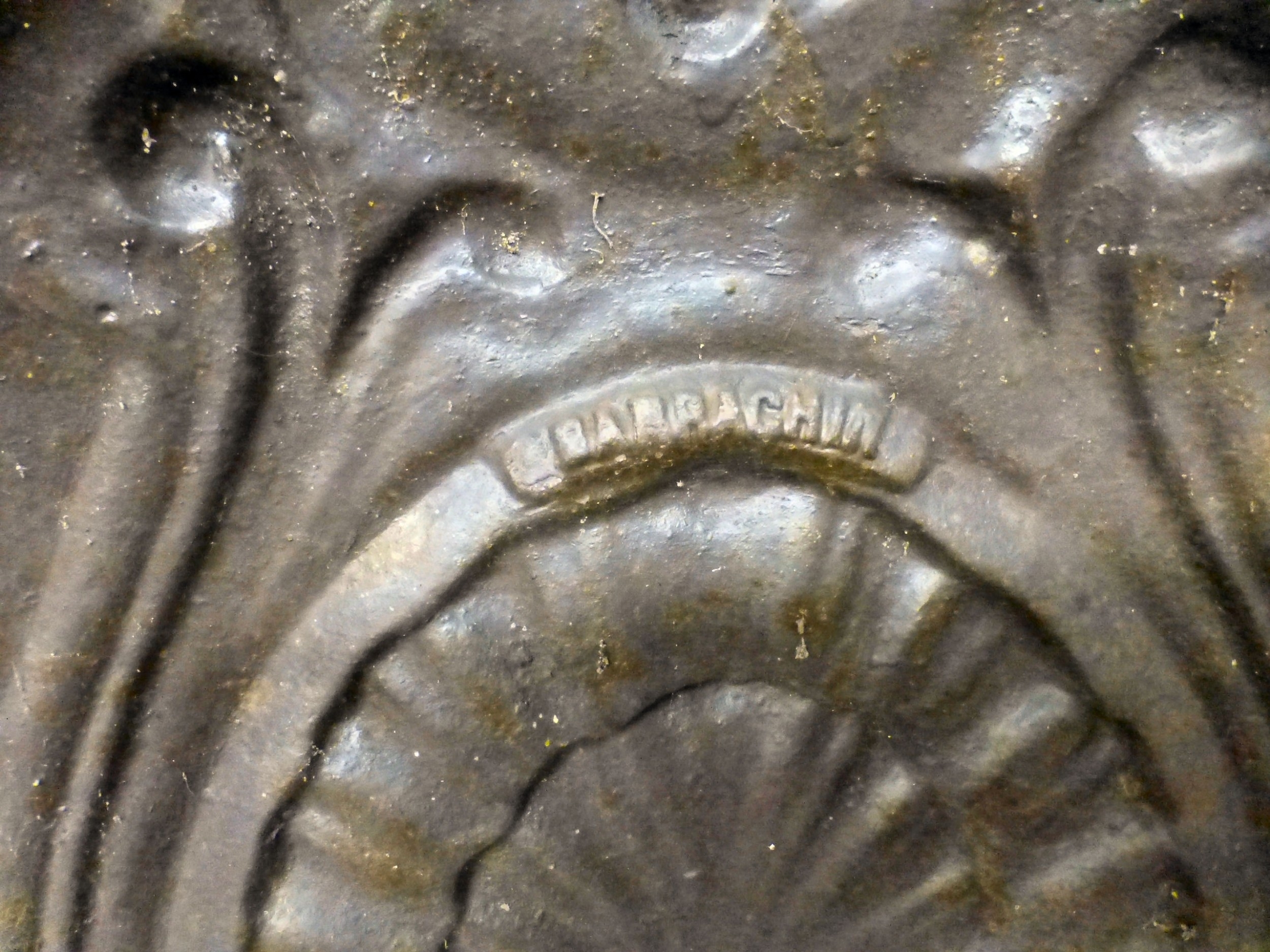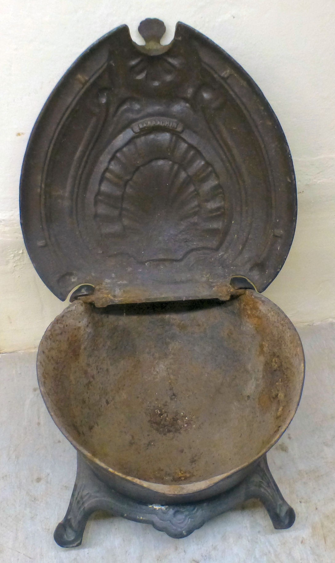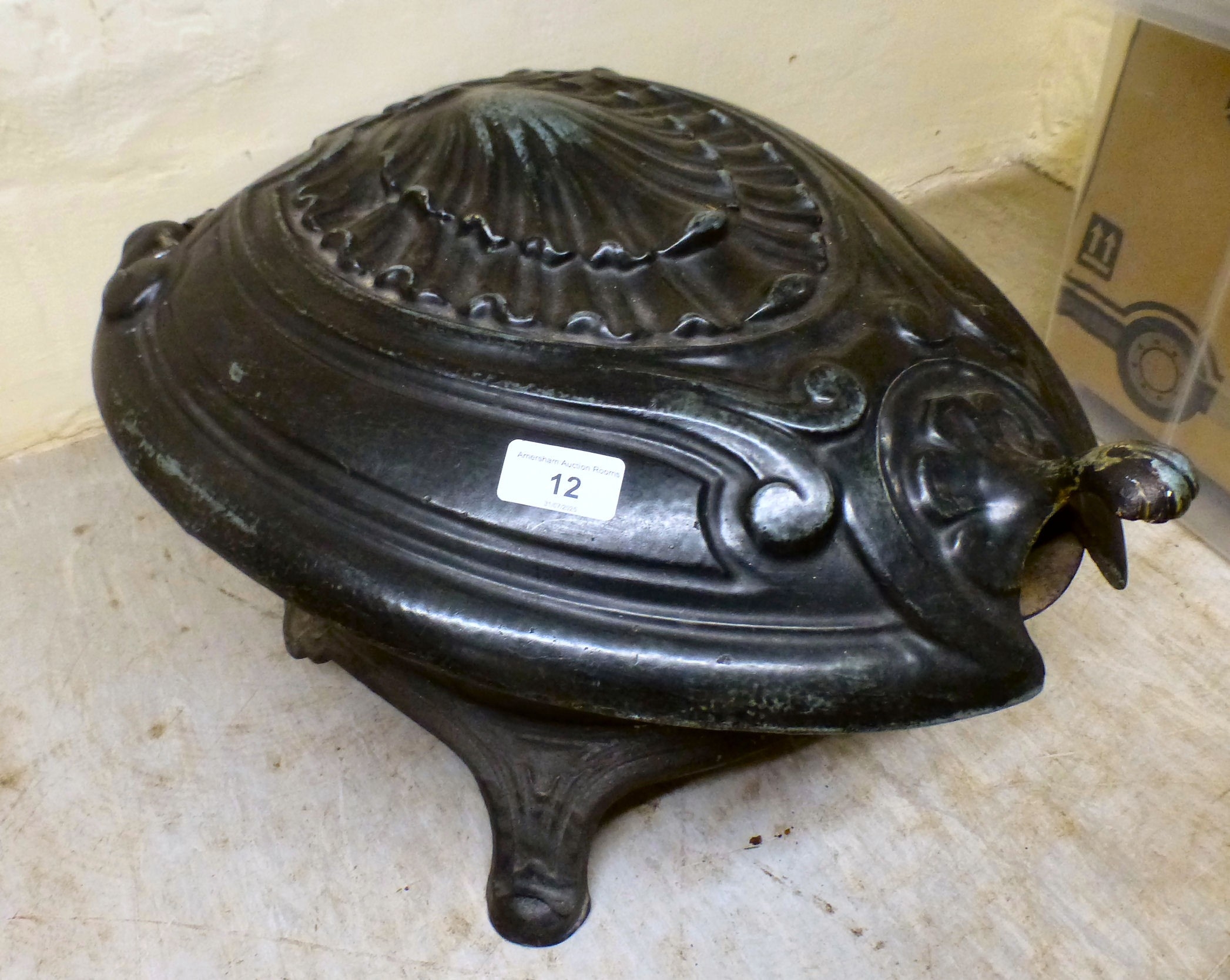 An early/mid 20thC cast iron coal scuttle, fashioned as a shell 9.5"h