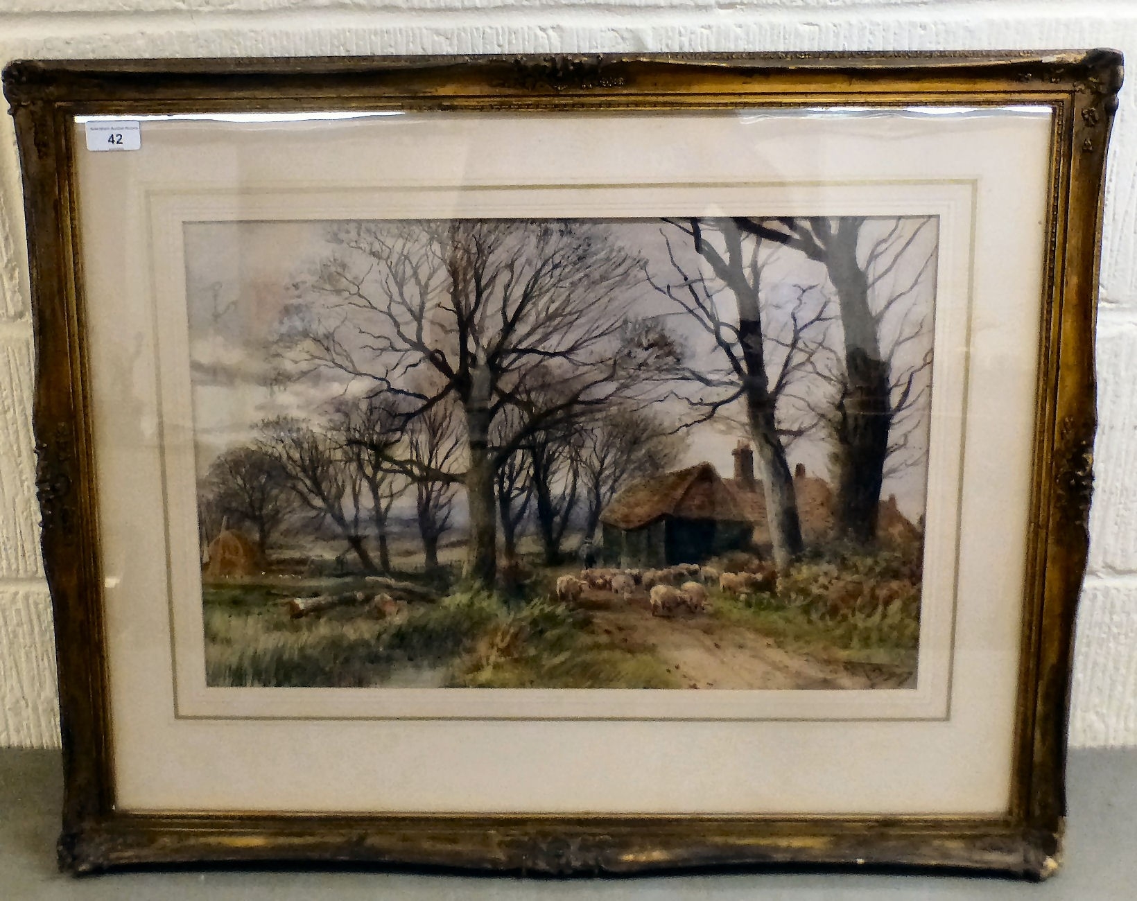 Henry Charles Fox - a shepherd with a flock of sheep, on a path watercolour bears a signature 13" x 20" framed