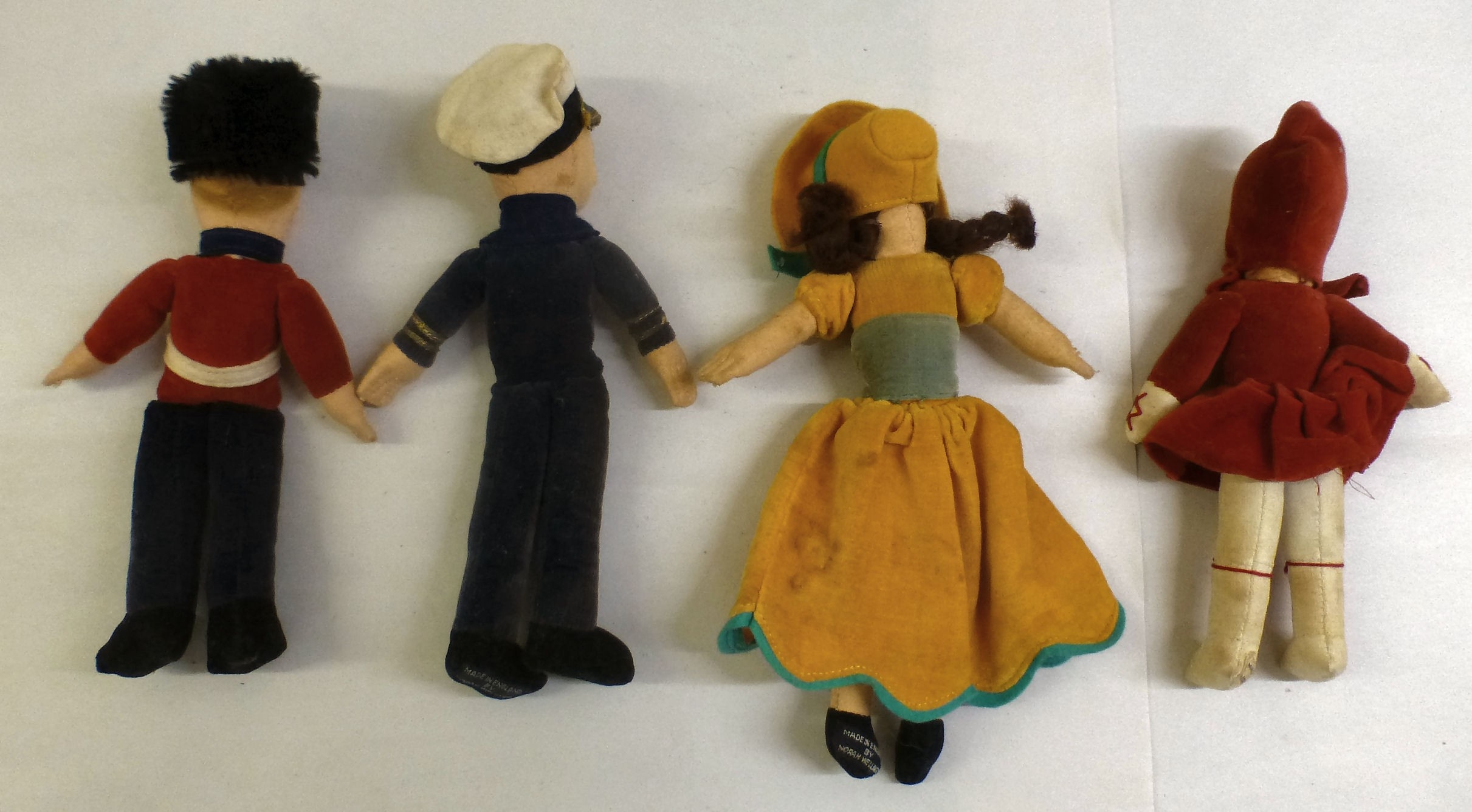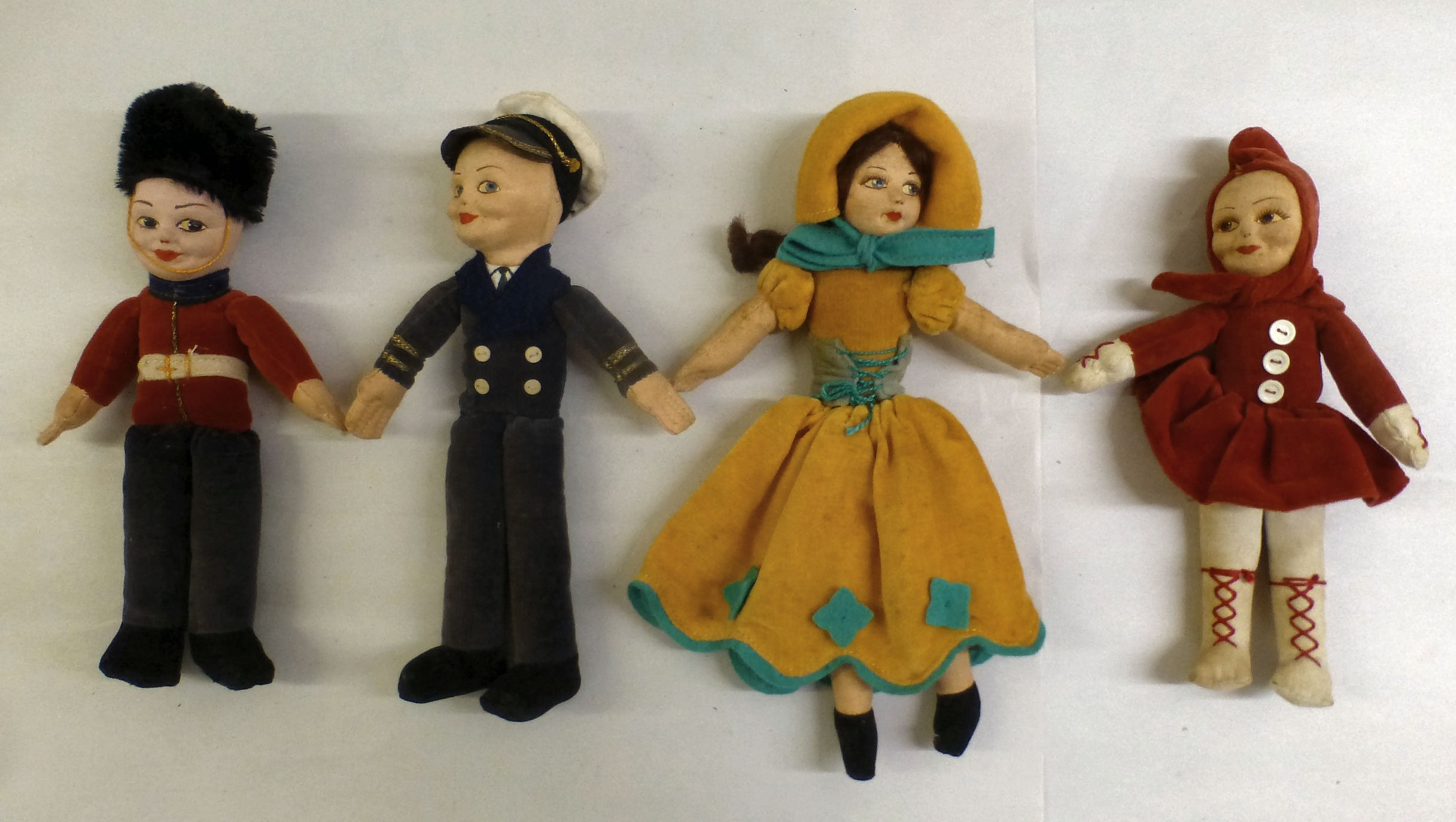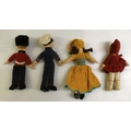 Four Norah Wellings fabric and felt dolls: to include a sailor 8"h