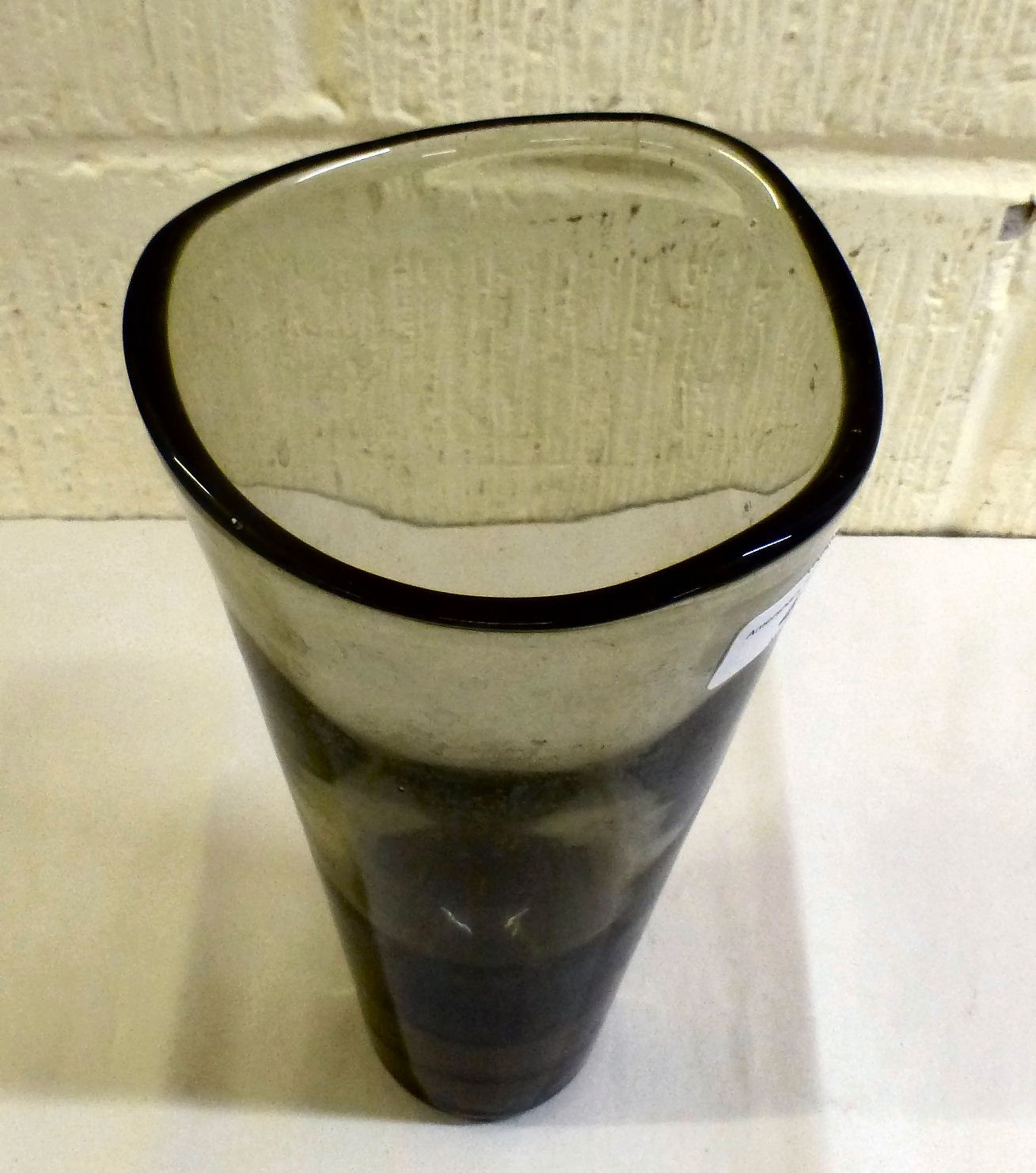 A Holmegaard smoked glass vase, model no.11689 bears etched marks 10"h