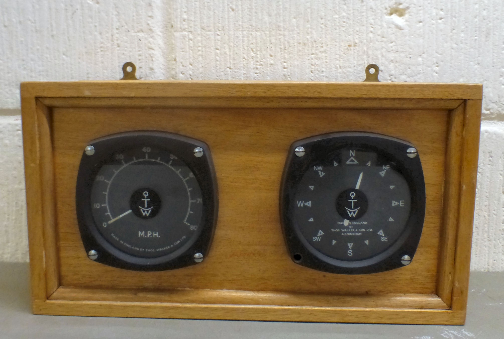 Thomas Walker & Sons Ltd, Birmingham - a speedometer and compass, in a fitted wooden case 7"h 12"w