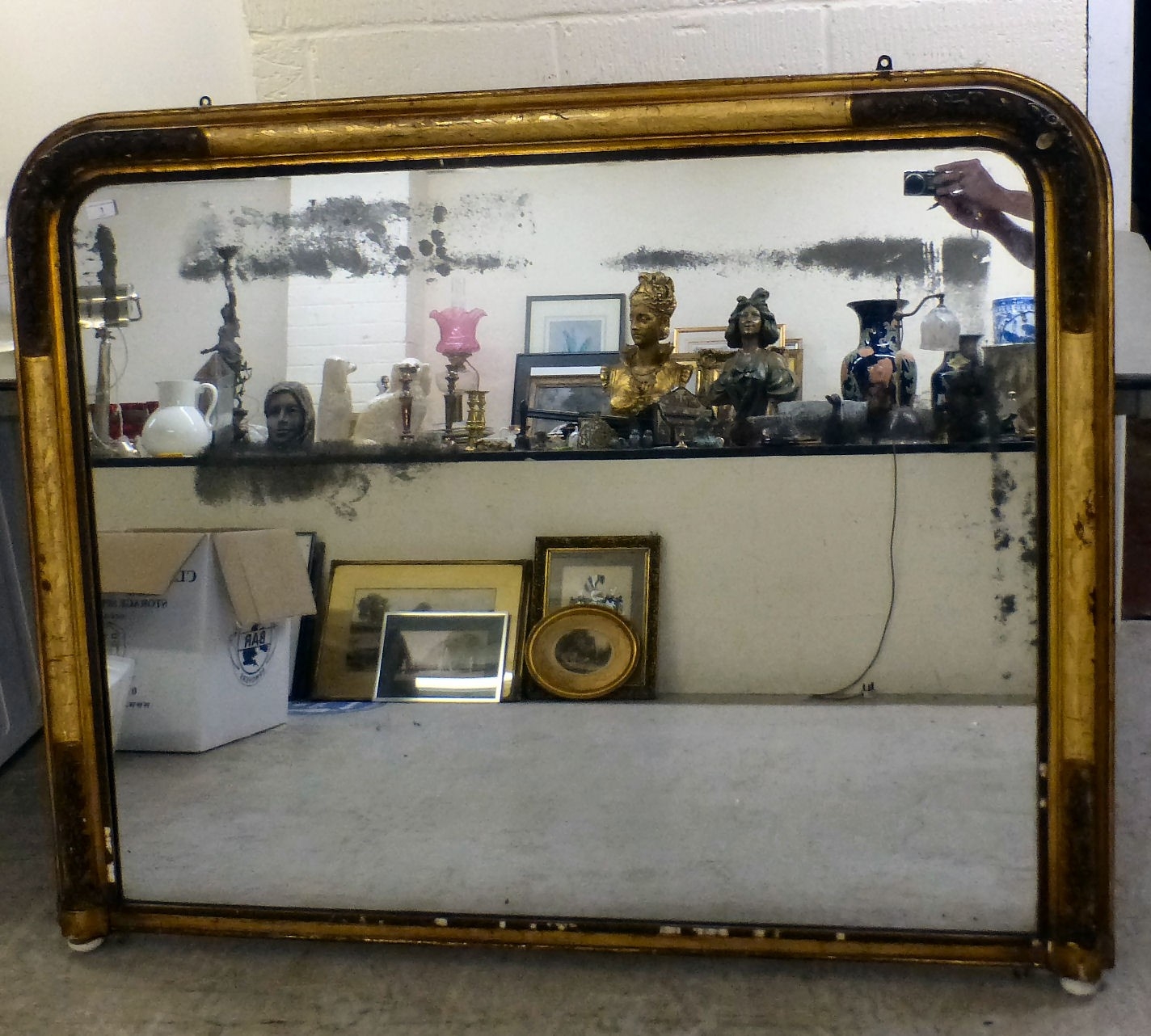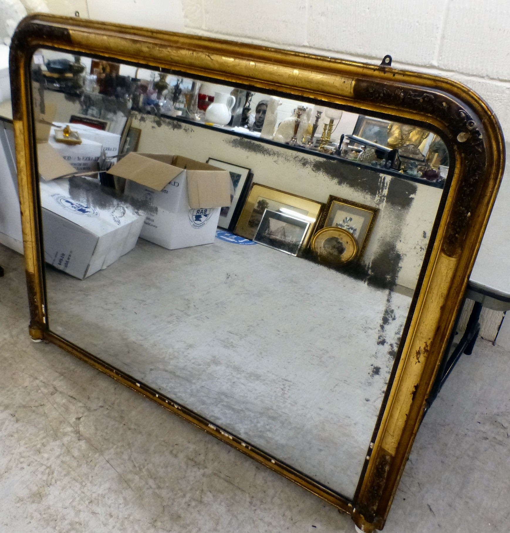 A 19thC overmantel mirror, the shaped plate set in a floral decorated, moulded gilt frame 42" x 55"