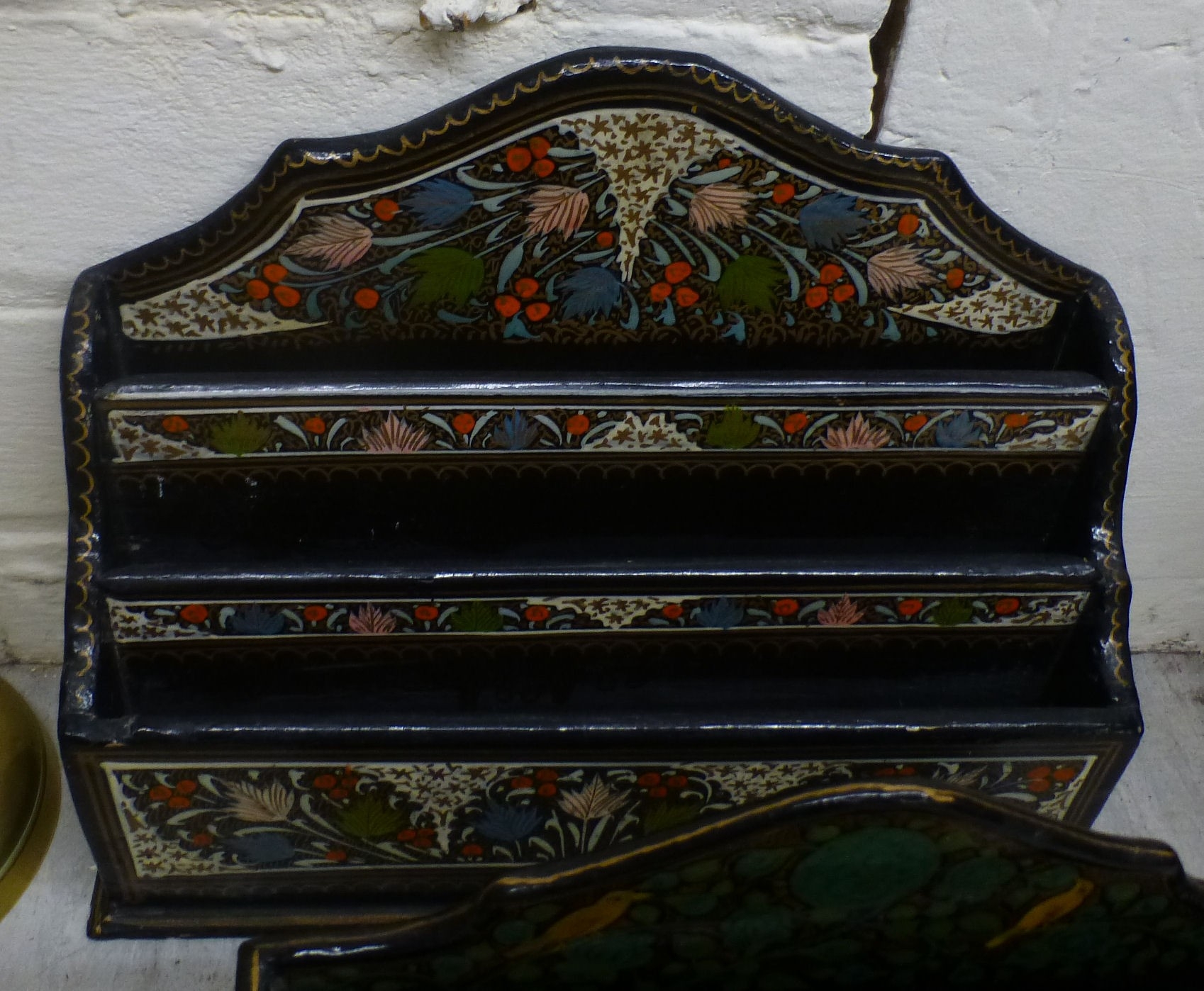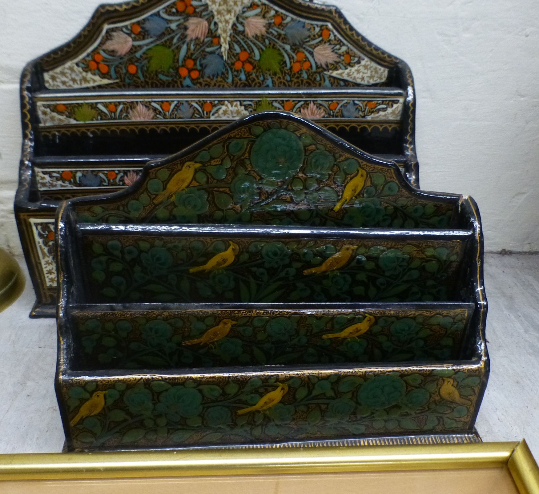 Desk top accessories: to include a black lacquered letter rack 8"h