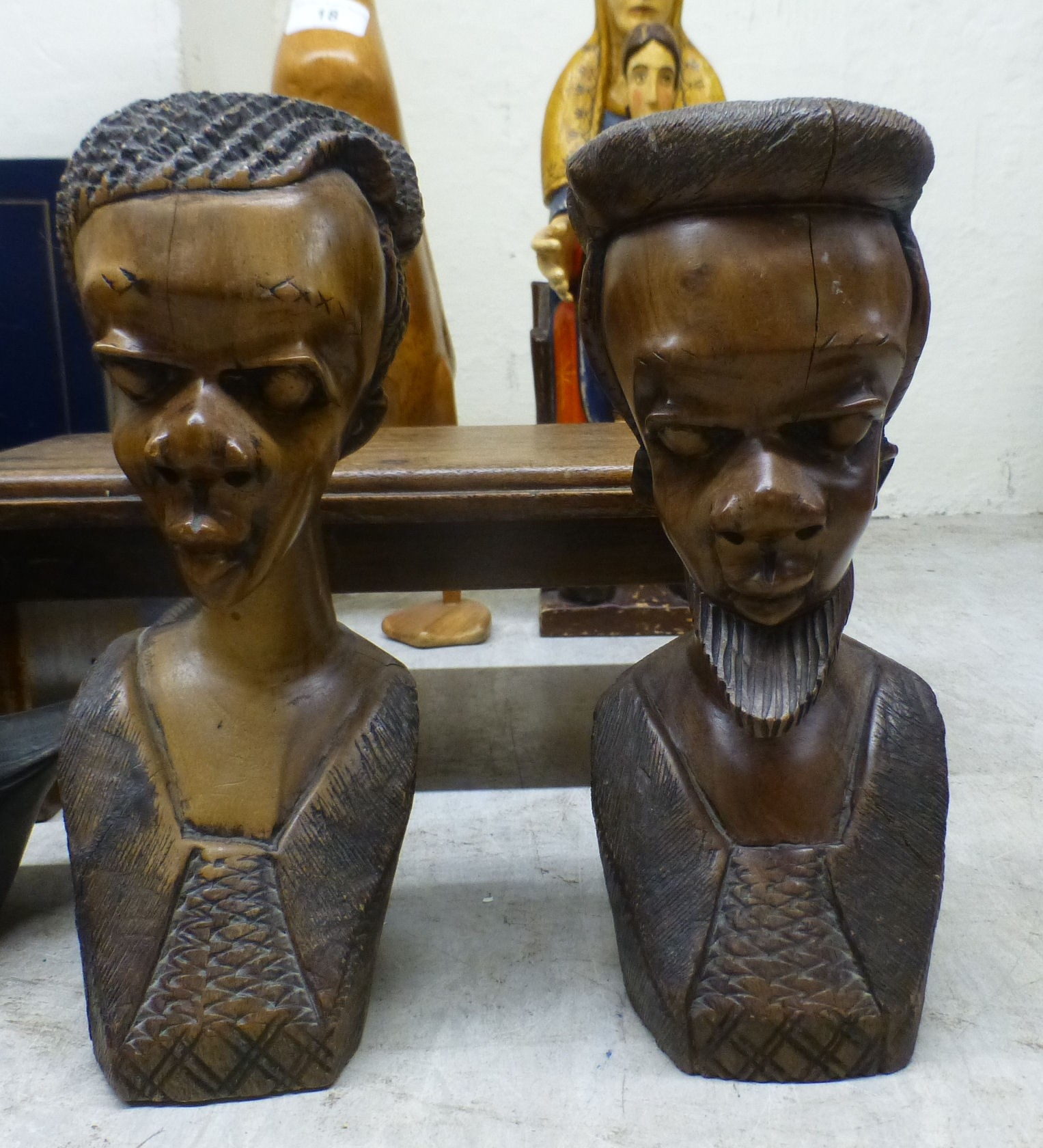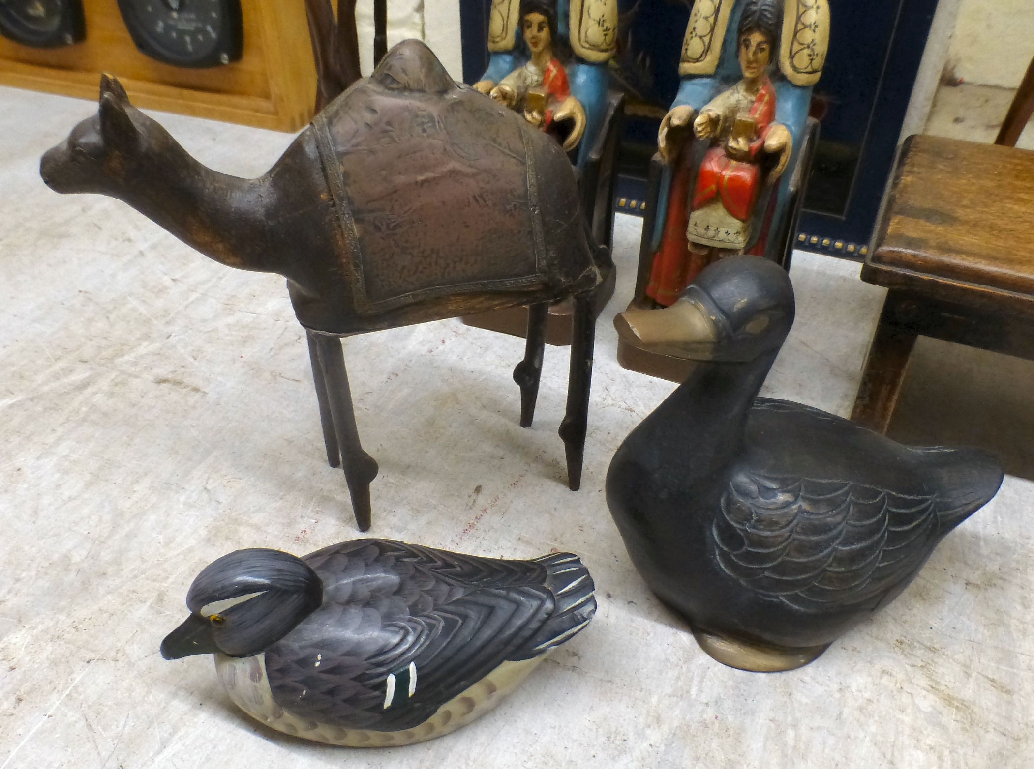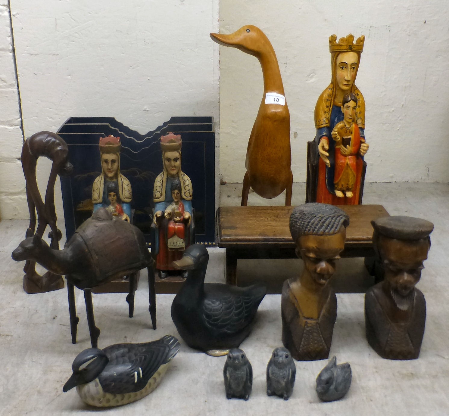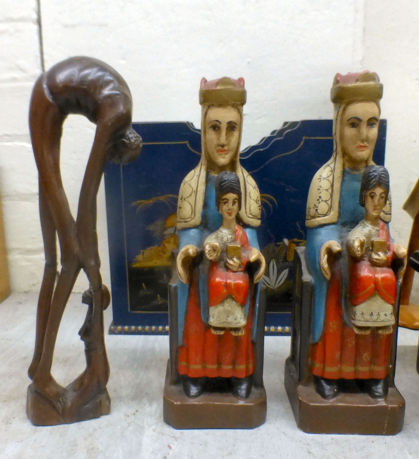 Wooden collectables: to include carved regal figures tallest 15"h; and other carvings