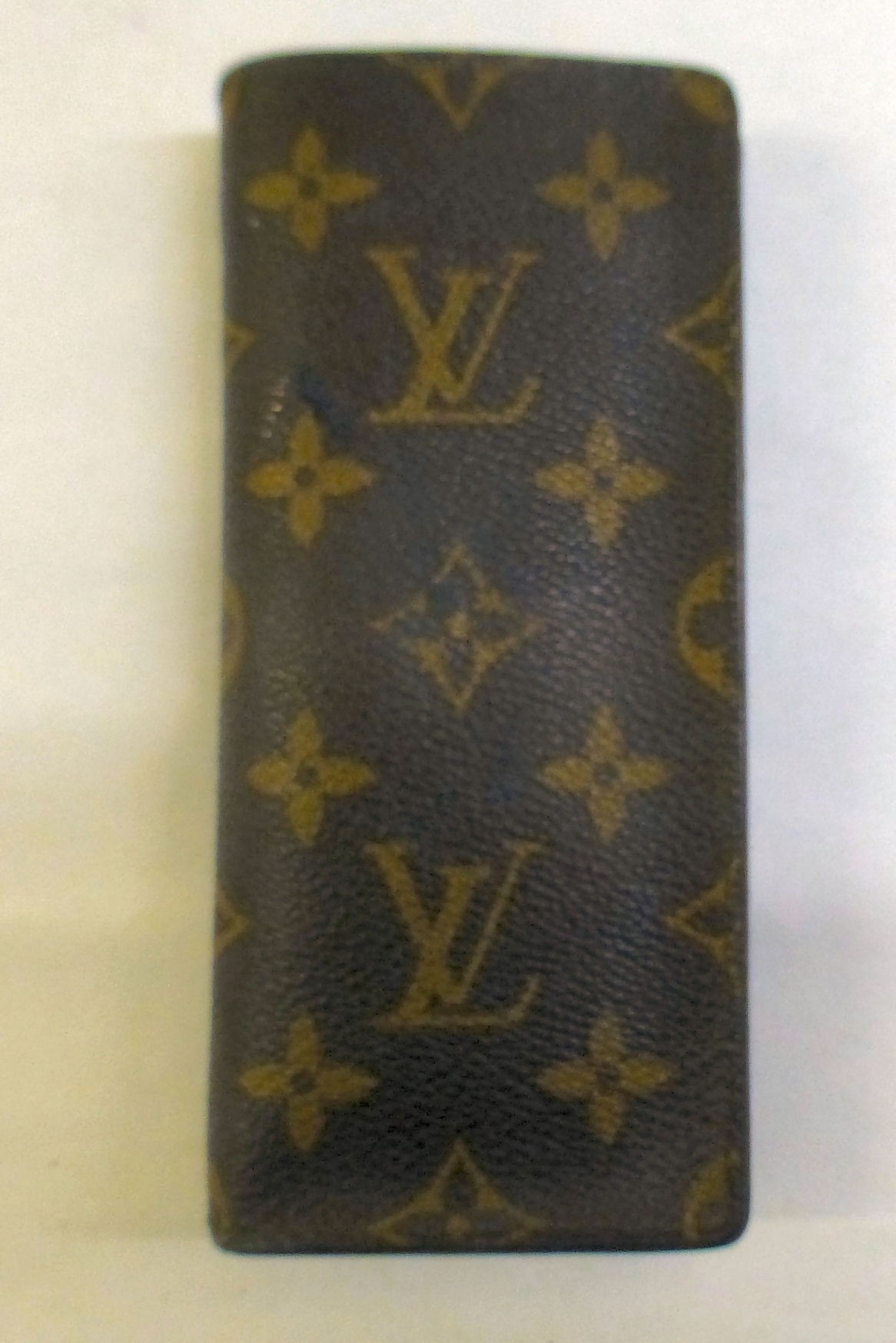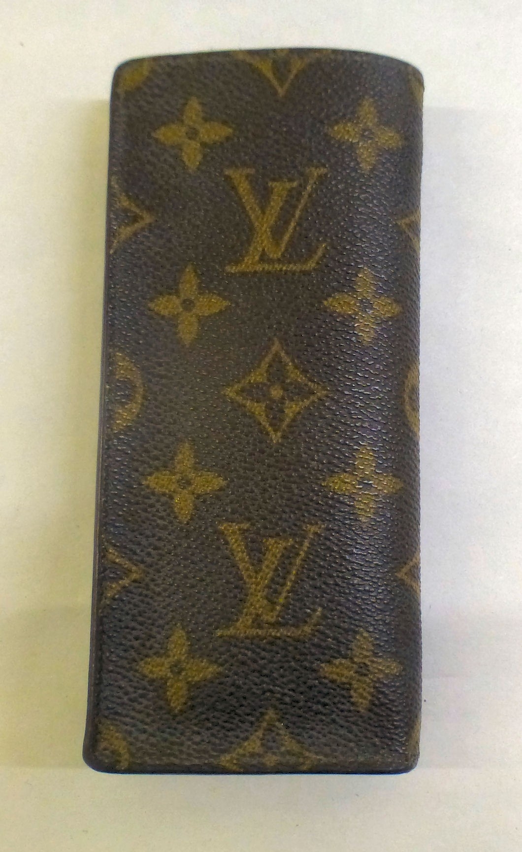 A Louis Vuitton brown hide spectacles sleeve 6.5" x 3"